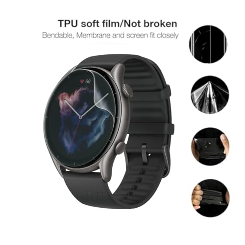 BESHYAKA - شاشة حماية هيدروجيل مرنة متوافقة مع ساعة امازفيت GTR 3 بوضوح عالي الدقة، خالية من الفقاعات، سهلة التركيب بتغطية كاملة للشاشة ومقاومة للغبار، ليست زجاجًا من بشياكة (قطعة واحدة)