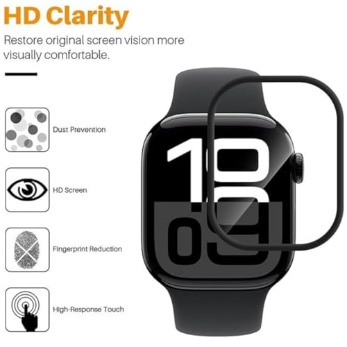 BESHYAKA - شاشة حماية لساعة آبل ووتش 10 مقاس 42 ملم بوضوح عالي الدقة HD، شاشة منحنية ثلاثية الأبعاد ومضادة للخدش وسهلة التركيب - غير زجاجية من بشياكة، (عبوة من قطعتين)