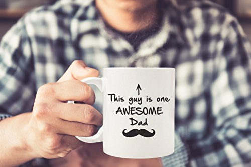- مج للقهوة بتصميم مرح مزين بعبارة "One Awesome Dad" - هدية مبتكرة للأب من الابن أو الابنة أو الزوجة - هدية رائعة لأب جديد أو للزوج (أبيض)