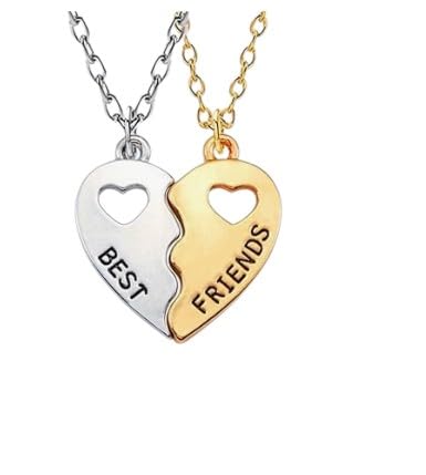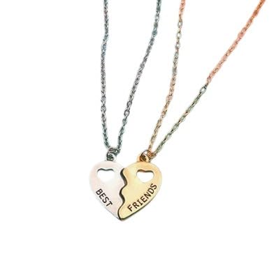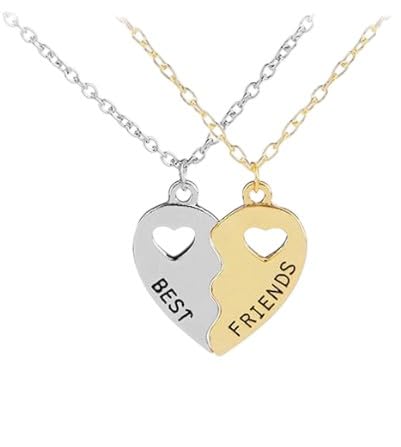 Generic - مجموعة قلادات بتصميم قلب مقسوم متطابقة من "بيست فريندز" | فضي وذهبي | قلادات صداقة كلاسيكية للبنات والنساء
