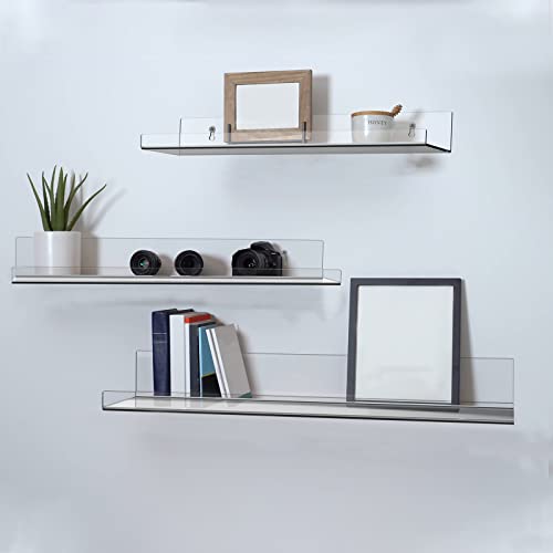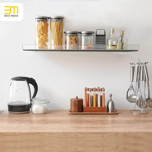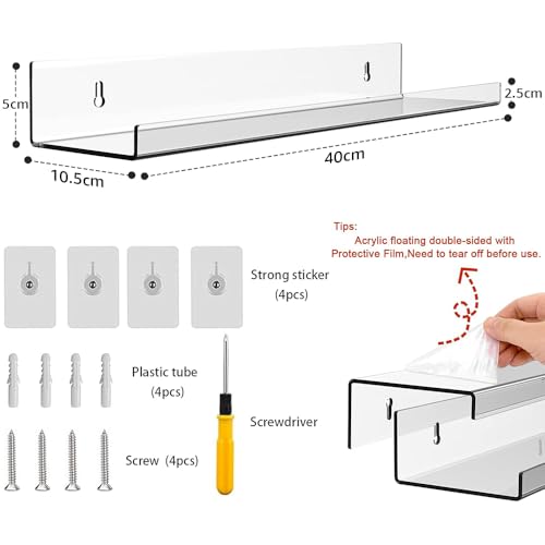 BM Best Media Advertising and Industrial Services - أرفف حائط أكريليك شفافة لا يتطلب حفرًا بفضل اللاصق القوي، رفوف عصرية مناسبة لعرض الصور وتخزين الأغراض في الحمام وغرفة النوم وغرفة المعيشة والمكتب، طقم من قطعتين، 40 سم، من بيست ميديا