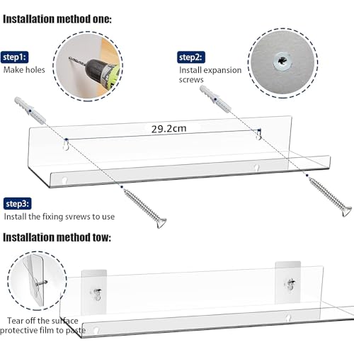 - متينة وقوية: على الرغم من مظهرها الرقيق، فإن هذه الأرفف مصنوعة من الأكريليك السميك والمتين ومصممة لحمل الأشياء الصغيرة بأمان. يضمن اللاصق القوي رابطًا موثوقًا يدوم طويلاً بالحائط.