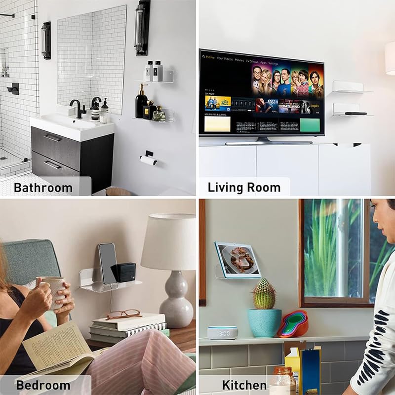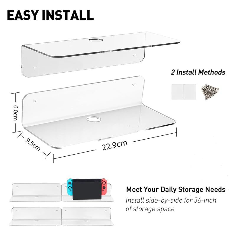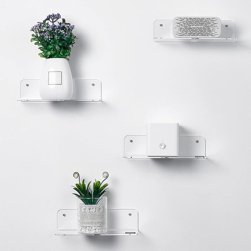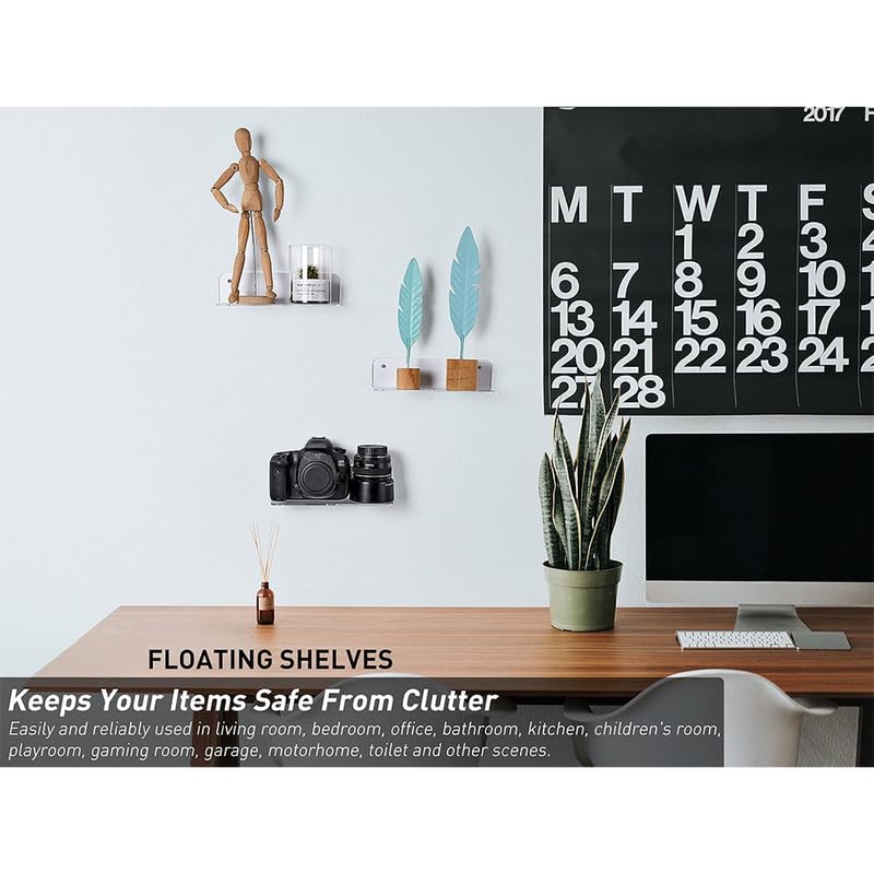 - تصميم عائم غير مرئي: مصنوعة من الأكريليك الشفاف عالي الجودة، تخلق هذه الأرفف تأثيرًا عائمًا مذهلاً يجعل ديكورك أو مقتنياتك تبدو أنيقة.
