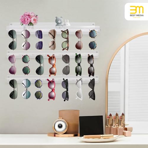 BM Best Media Advertising and Industrial Services - حامل نظارات شمس يثبت على الحائط من بيست ميديا، منظم نظارات من الاكريليك الشفاف رف تخزين بتصميم حديث للنظارات والمجوهرات ومفاتيح المدخل، مجموعة من 3 قطع