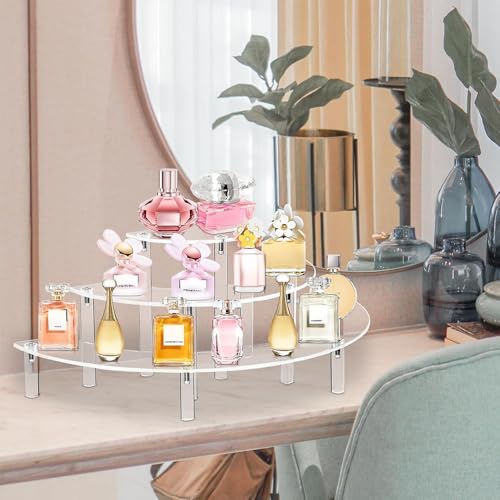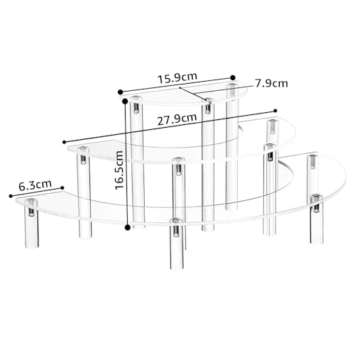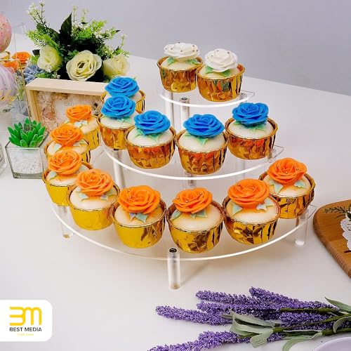 BM Best Media Advertising and Industrial Services - حامل عرض شفاف بـ3 طبقات على شكل نصف قمر – مصنوع من الاكريليك، لعرض الكب كيك والمقتنيات وطاولات الحلوى ومنصات عرض المنتجات، منظم أنيق متعدد المستويات، شفاف بالكامل من بيست ميديا