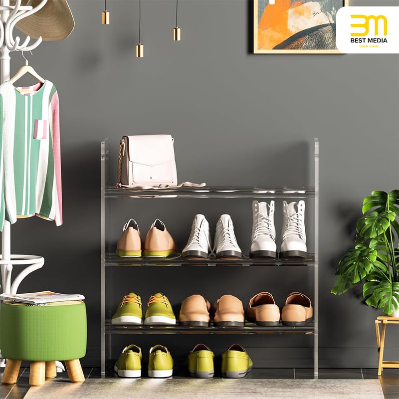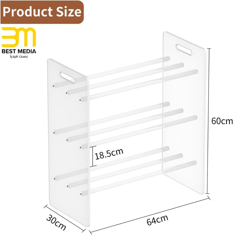 BM Best Media Advertising and Industrial Services - رف احذية اكريليك من 3 طبقات من بيست ميديا - منظم احذية بسيط قائم بذاته، 64 عرض × 30 عمق × 60 سم ارتفاع، رف شفاف ومتين للمدخل والخزانة وغرفة المعيشة وديكور المنزل العصري