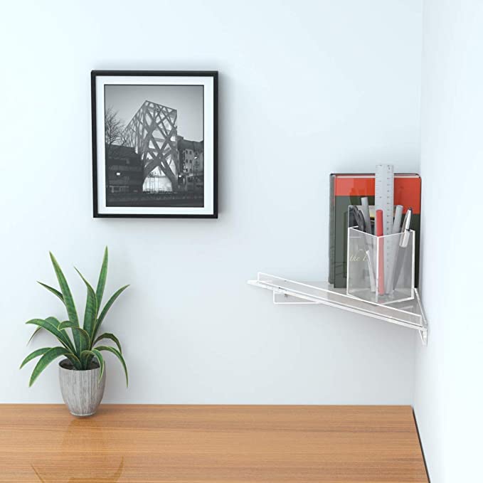- سهل التركيب - كل رف زاوية من الأكريليك تم إمساكه بواسطة 4 براغي، ولا توجد متطلبات لمواد الحائط.