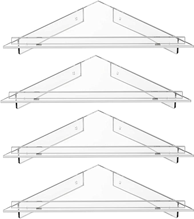 - سهل التركيب - كل رف زاوية أكريليك مثبت بـ 4 براغي، لا توجد متطلبات لمواد الحائط.