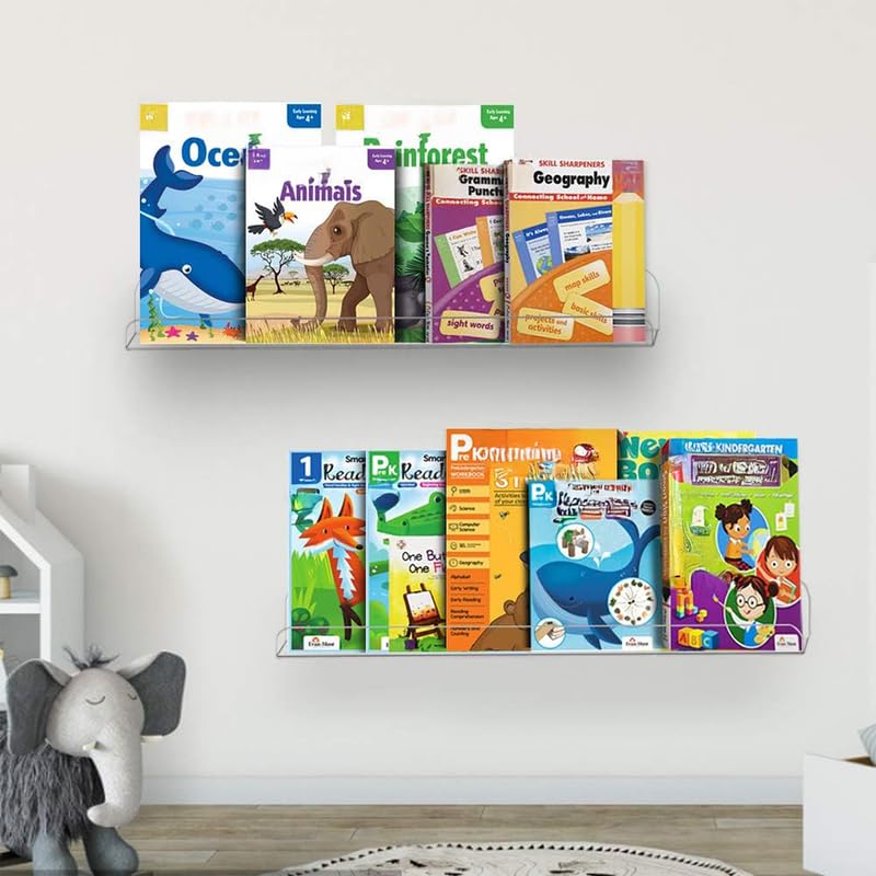 - تنظيم حائط موفر للمساحة: حرر مساحة كبيرة على الطاولة والأرضية. هذه العبوة المكونة من 4 قطع مثالية لإنشاء رف كتب للأطفال مواجه للأمام في غرفة الأطفال أو حمل أدوات التجميل في الحمام أو تنظيم غرفة المعيشة.