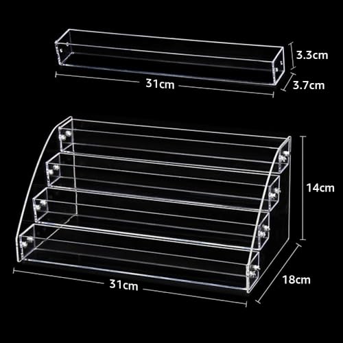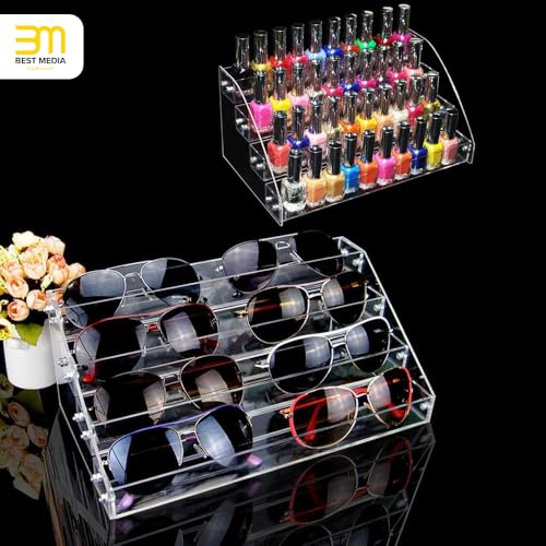 BM Best Media Advertising and Industrial Services - منظم مكياج اكريليك متعدد الطبقات بـ 4 من بيست ميديا، رف عرض عريض لأحمر الشفاه وطلاء الأظافر والايشادو، حامل شفاف يوضع على سطح الطاولة للزيوت العطرية والدهانات وعروض البيع بالتجزئة