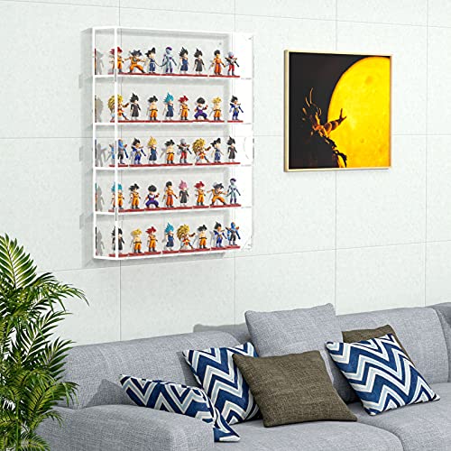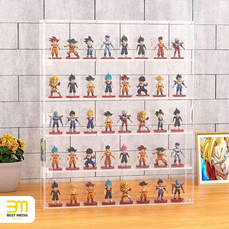 BM Best Media Advertising and Industrial Services - صندوق عرض اكريليك من 5 مستويات، خزانة مقاومة للغبار بحامل يثبت على الحائط أو توضع على سطح المكتب، لحفظ الألعاب الصغيرة - تصميم عصري من بيست ميديا - قطعة واحدة - شفافة