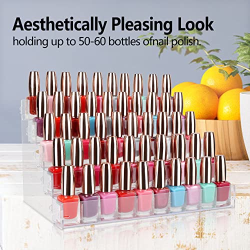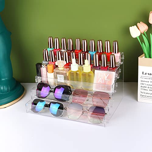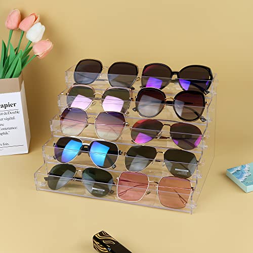 BM Best Media Advertising and Industrial Services - منظم نظارات شمسية اكريليك من 5 طبقات، حامل عرض شفاف لسطح الطاولة للنظارات وطلاء الأظافر والمكياج والزيوت العطرية، سهل التجميع بدون أدوات للاستخدام في المنزل او البيع بالتجزئة من بيست ميديا، شفاف