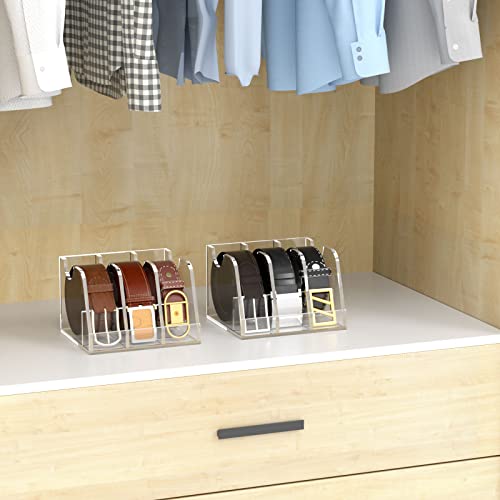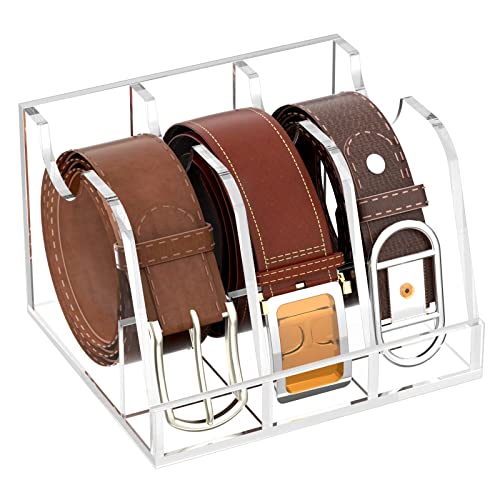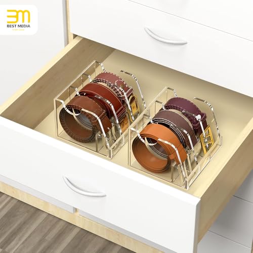 BM Best Media Advertising and Industrial Services - منظم أحزمة اكريليك من بيست ميديا، حامل تخزين شفاف للأحزمة مع 3 مساحات تخزين وحامل عرض، مثالي لتنظيم الخزانة والأدراج وخزانة الملابس، حل تخزين أنيق للأحزمة، شفاف