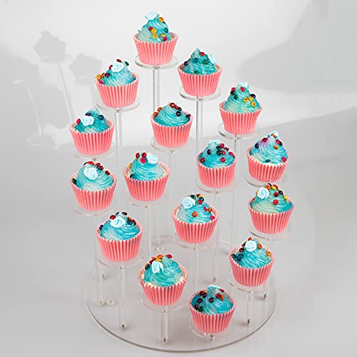 BM Best Media Advertising and Industrial Services - حامل عرض كب كيك اكريليك، يحمل 16 كب كيك، حامل حلوى دائري شفاف 29.7 × 29.7 × 33 سم، طبق تقديم المعجنات متعدد الطبقات لحفلات الزفاف وأعياد الميلاد والعطلات والبوفيه من بيست ميديا
