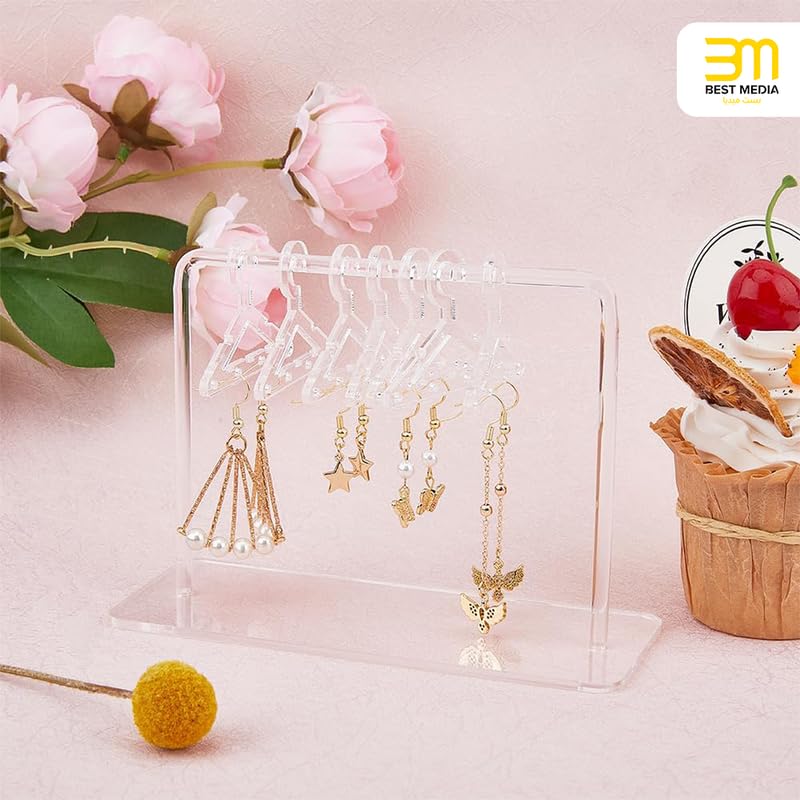 BM Best Media Advertising and Industrial Services - منظم عرض الاقراط الاكريليك من بيست ميديا مع 16 شماعة، حامل مجوهرات معلق شفاف للنساء والفتيات - عصري - قطعة واحدة - شفاف