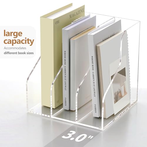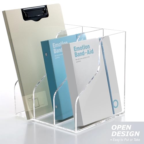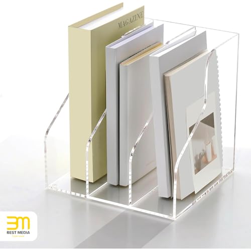 BM Best Media Advertising and Industrial Services - حامل مجلات اكريليك من بيست ميديا، رف منظم ملفات مكتبي شفاف بـ3 فتحات للكتب والملفات والمستلزمات المكتبية، رف كتب موفر للمساحة، أداة فرز للمكتب او مساحة العمل، حامل شفاف، شفاف