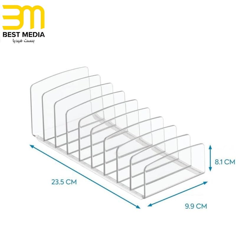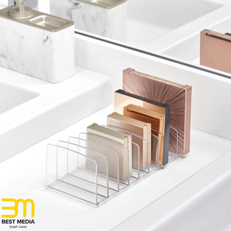 BM Best Media Advertising and Industrial Services - منظم باليت مكياج اكريليك شفاف من بست ميديا، خالي من بيسفينول أ مع 9 فواصل متعددة الطبقات، 23.5 سم (عمق) × 10 سم (عرض) × 8 سم (ارتفاع)، حامل متين لطاولة الزينة والحمام للايشادو وبودرة خدود والبودرة