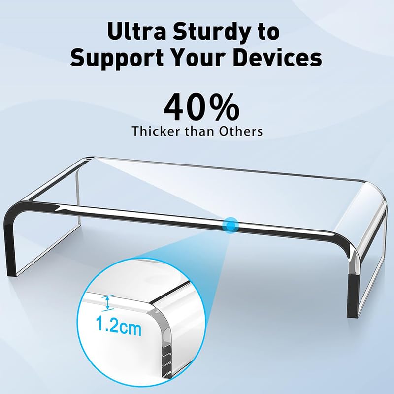 - أكريليك ممتاز وقوي: مصنوع من قطعة واحدة من الأكريليك الشفاف السميك عالي الجودة من أجل ثبات ومتانة استثنائية، يدعم بسهولة معظم الشاشات وأجهزة اللاب توب والطابعات دون تذبذب.