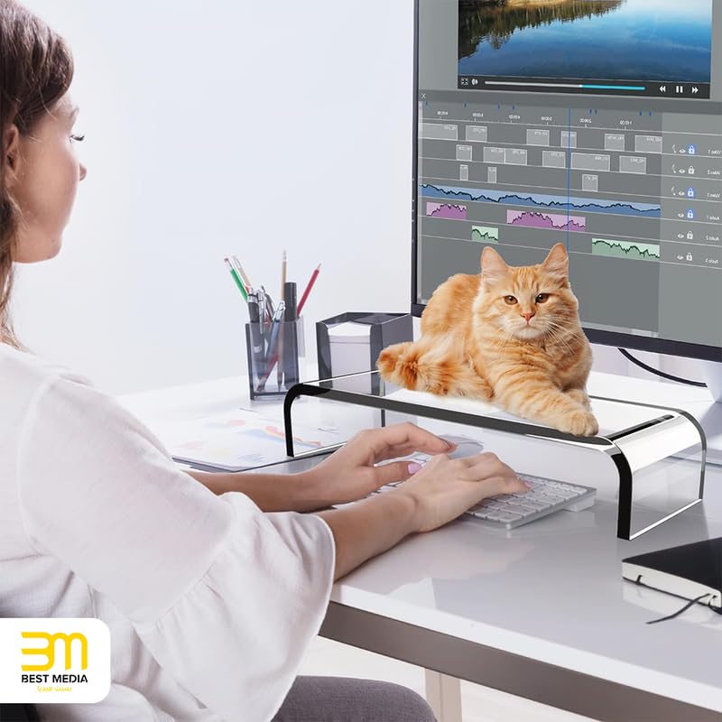 BM Best Media Advertising and Industrial Services - حامل شاشة اكريليك من بيست ميديا، حامل كمبيوتر شفاف للمنزل او المكتب، منظم سطح المكتب المتين للوحة المفاتيح وارتفاع الشاشة