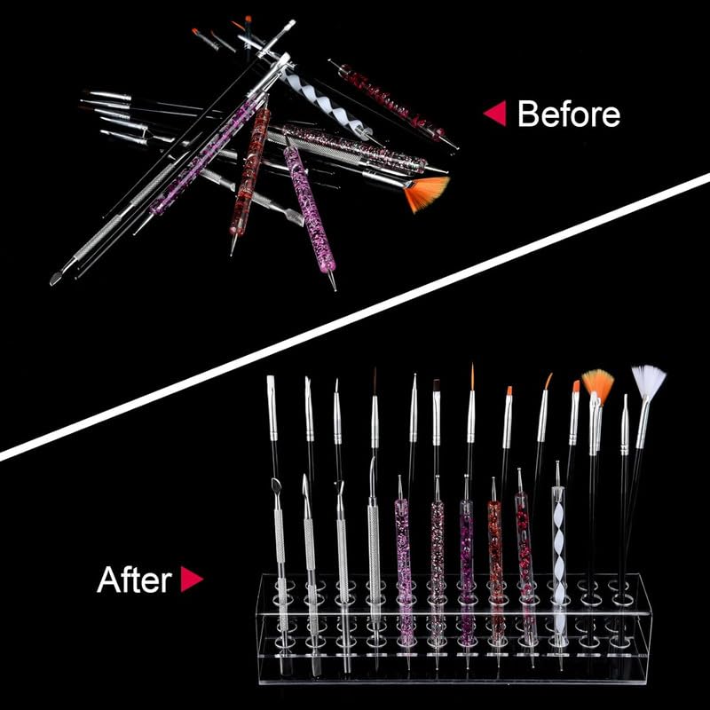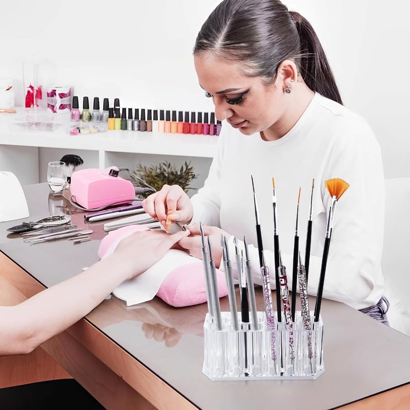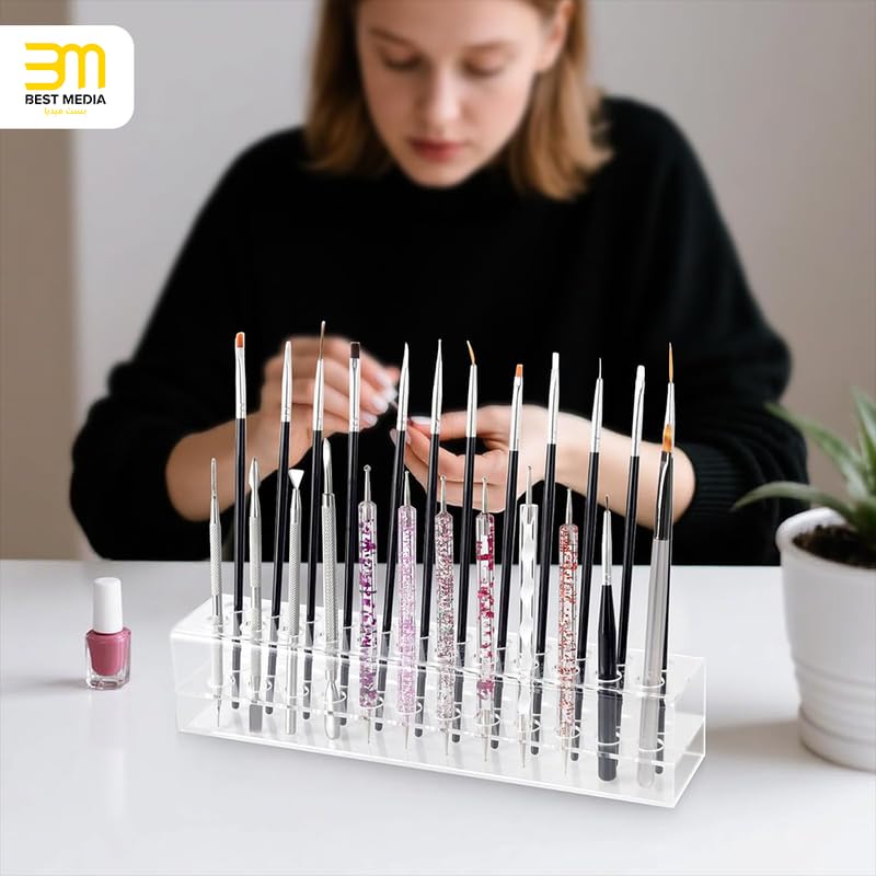 BM Best Media Advertising and Industrial Services - منظم ادوات تزيين الاظافر الاكريليك من بيست ميديا، حامل فرشاة الاظافر، حافظة عرض مكياج شفافة مقاومة للتآكل لفنيي الاظافر ومساحات عمل التجميل - شفاف - عبوة واحدة