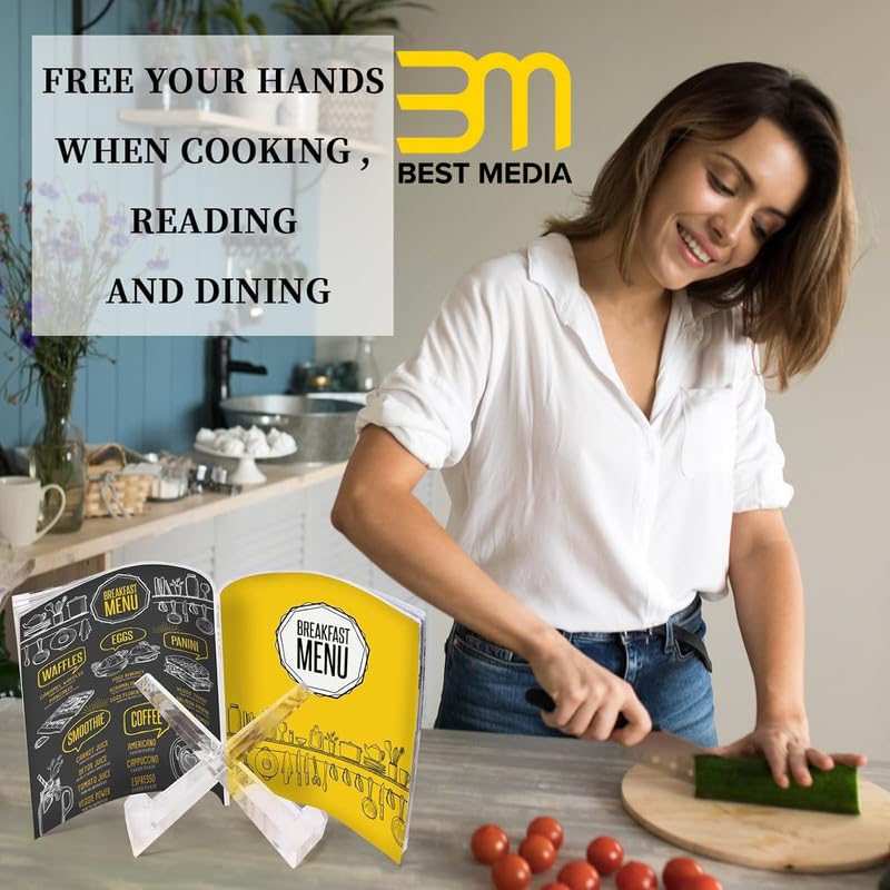 - لمسة نهائية فائقة الشفافة: الحامل مصنوع من الأكريليك الشفاف الخالي من العيوب والذي يشبه الزجاج المصقول ولكنه يوفر متانة فائقة. يوفر رؤية خالية من العوائق لكتاب الطبخ أو الصورة أو العمل الفني.