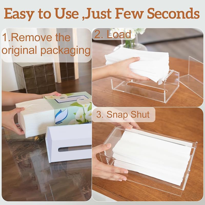 - يخفي التصميم المستطيل الأنيق والعصري صناديق المناديل المصنوعة من الورق المقوى ذات الحجم القياسي، مما يحسن مظهر حمامك أو غرفة نومك أو مكتبك على الفور.