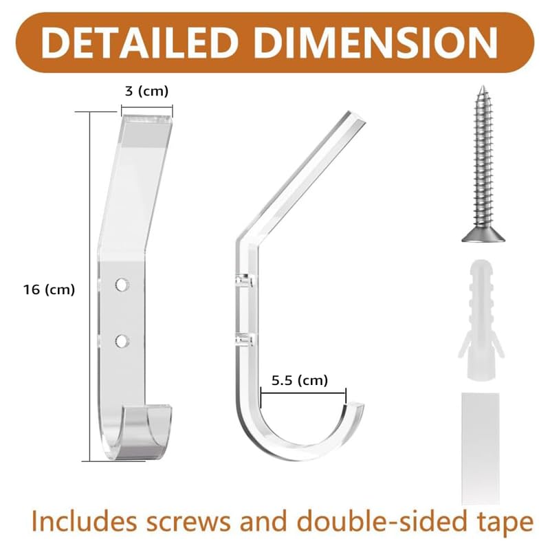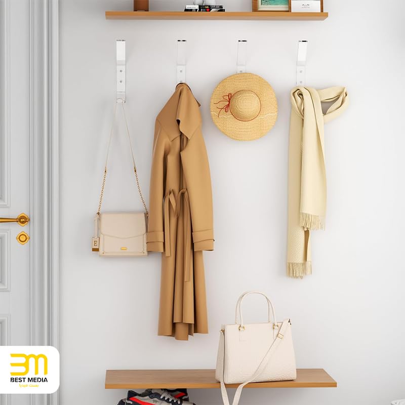 - تصميم أنيق وعصري: يخلق التصميم البسيط والشفاف لهذه الخطافات وهمًا "عائمًا" يمتزج بسلاسة مع أي نمط ديكور منزلي، من المعاصر إلى الكلاسيكي. يضيف مظهرها السري والأنيق أناقة عملية إلى المدخل أو الحمام أو الخزانة أو المطبخ دون أن يتعارض مع عناصر التصميم الحالية، مما يوفر تنظيمًا بدون انزعاج بصري.