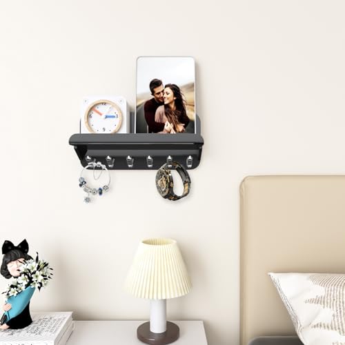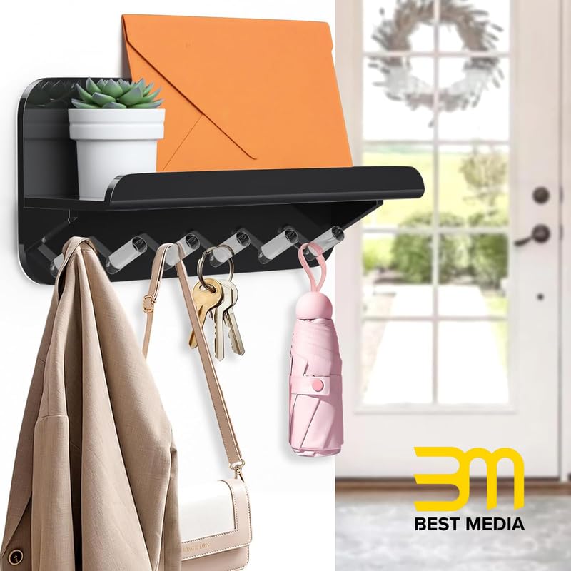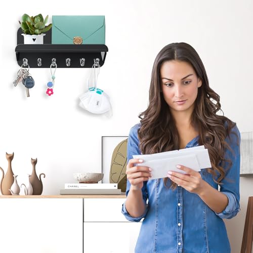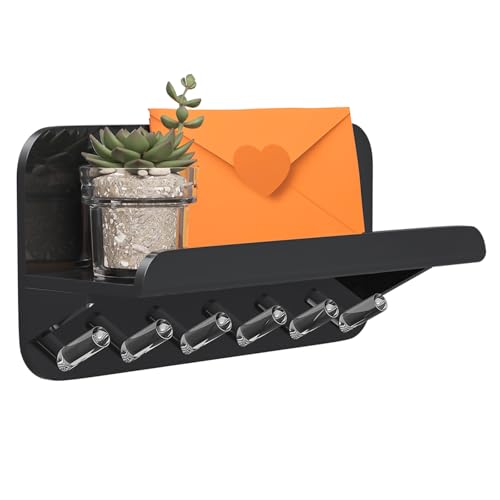 BM Best Media Advertising and Industrial Services - حامل مفاتيح مزخرف للمدخل من الاكريليك الشفاف مع رف لرسائل البريد و6 خطافات، منظم بريد يثبت على الحائط للمكتب والرواق والمطبخ وغرفة المعيشة من بيست ميديا، لون أسود