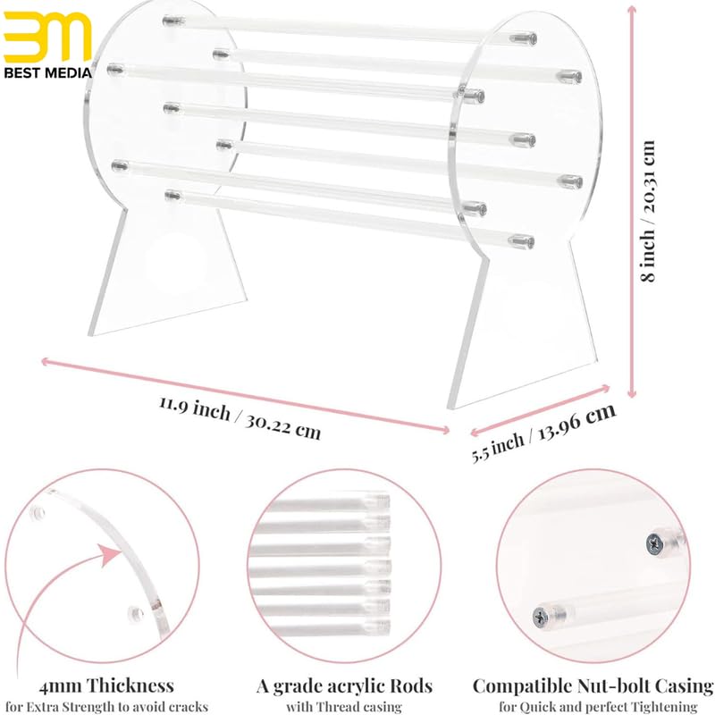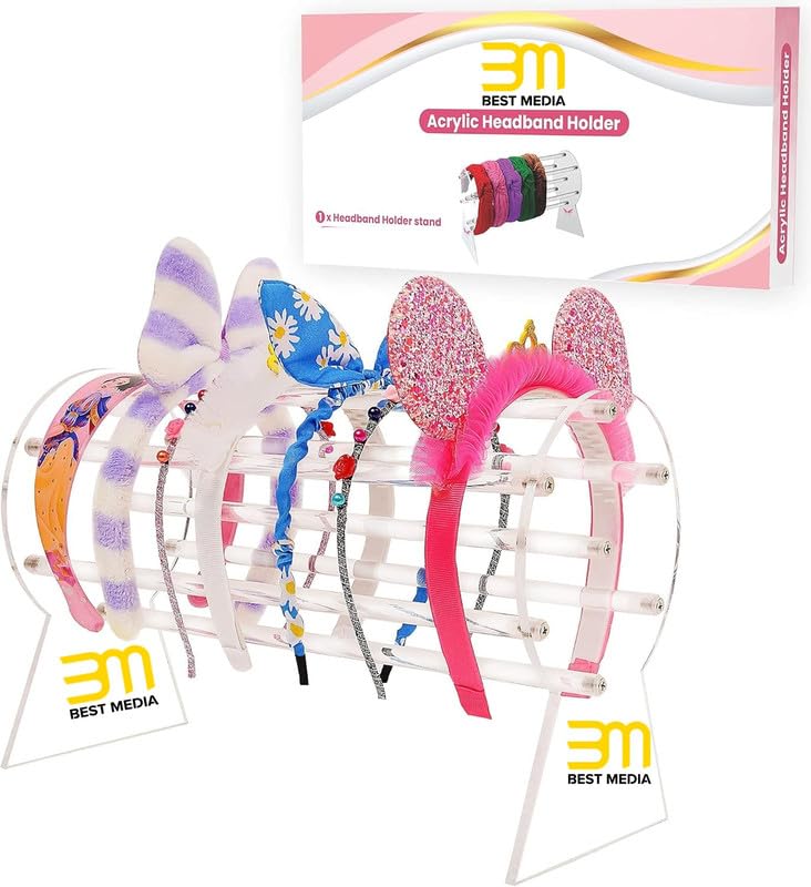 BM Best Media Advertising and Industrial Services - حامل عرض وشرائط الرأس من الاكريليك، رف منظم عصري لأطواق الشعر وربطات الشعر والساعات، اكسسوار دولاب أنيق للبنات والنساء من بيست ميديا، شفاف