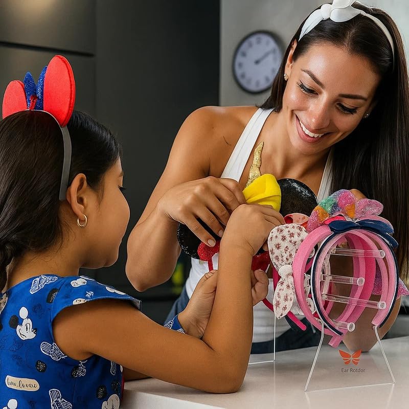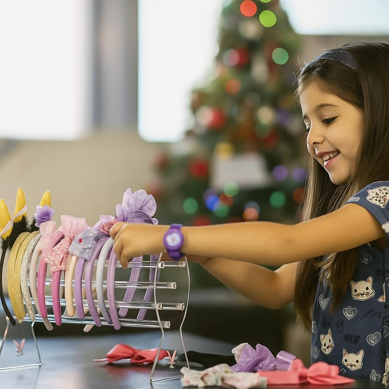 - حامل إكسسوارات متعدد الأغراض: في حين أنه مثالي لعصابات الرأس، إلا أن التصميم متعدد الاستخدامات يعمل أيضًا بشكل رائع كحامل لعرض ربطات الشعر والأساور العريضة والساعات.
