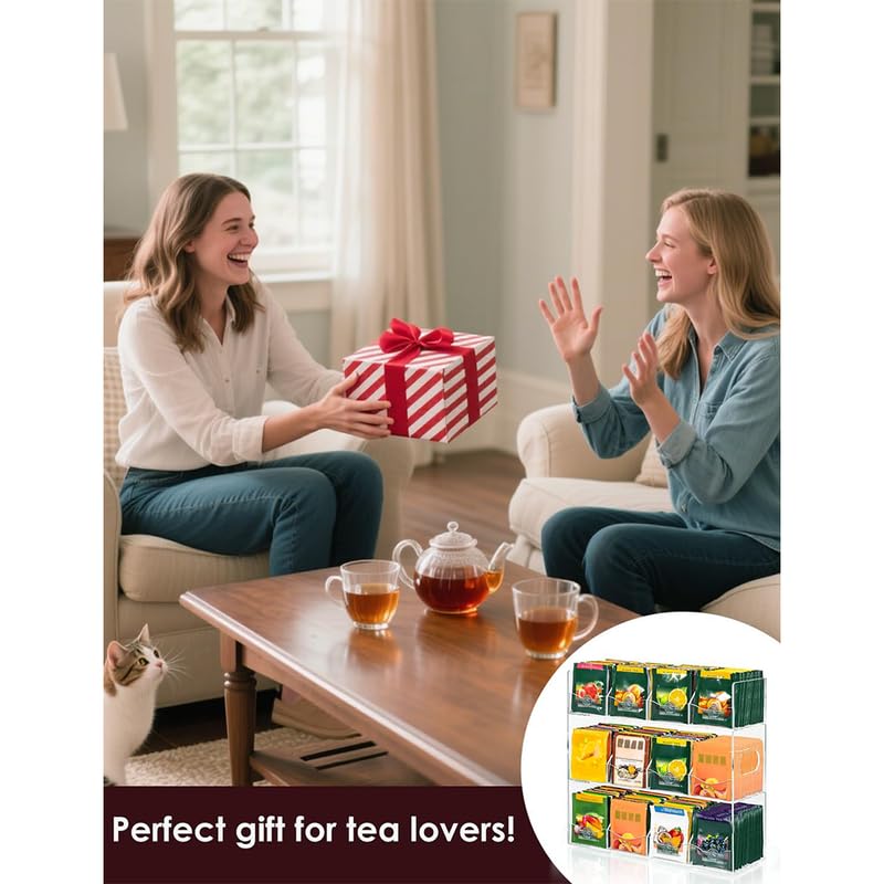 - يتميز بتسعة أقسام واسعة، ويتسع لأكثر من 216 كيس شاي بالحجم القياسي، مما يتيح ترتيب وعرض نكهات الشاي المفضلة لديك. يتيح التصميم الشفاف للغاية رؤية مجموعة الشاي بالكامل في لمحة واحدة، مما يسهل اختيار المشروب المناسب حسب الرغبة.