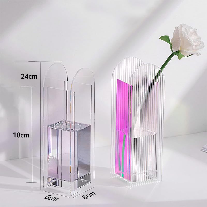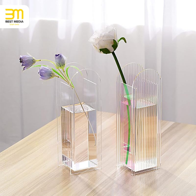 BM Best Media Advertising and Industrial Services - فازة زهور عصرية من الأكريليك على شكل قوس ديكور هندسي فريد لسطح المكتب وحاوية زهور نباتية لمنزلك من بيست ميديا، مقاس 8 × 24 سم - قطعة واحدة - لون شفاف