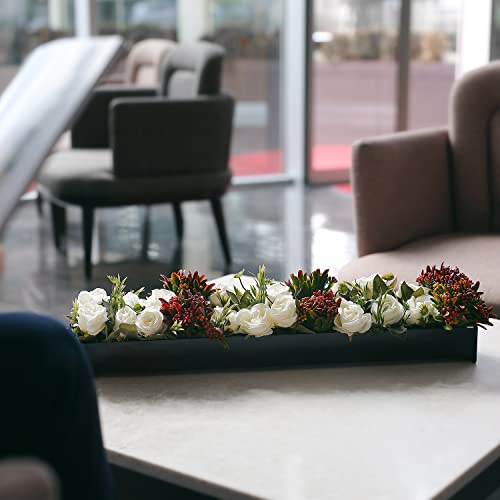 - فازة مستطيلة سوداء 60 سم: مصممة لاستيعاب تنسيقات الزهور عبر ترابيزات تناول الطعام أو إعدادات الفعاليات بمظهر أنيق منخفض الارتفاع.