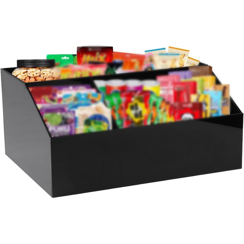 - وصول سريع للإمساك وإعادة التعبئة: يوفر التصميم شبه المنحرف المفتوح رؤية كاملة للمحتويات - لا حاجة إلى أدراج أو أغطية. يمكنك إعادة تخزين وجباتك الخفيفة المفضلة بسهولة في أي وقت دون البحث في الصناديق.