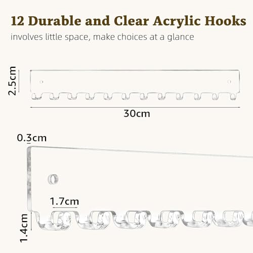 - طقم منظم الأعقاد المثبت على الحائط من قطعتين: يتضمن منظمين للمجوهرات من الأكريليك الشفاف، كل واحد منهما بـ 12 خطافًا، مما يوفر مساحة واسعة لتعليق السلاسل والأساور والخواتم والأساور الحلقية. يحافظ على مجموعتك ظاهرة ومنظمة وخالية من التشابك.