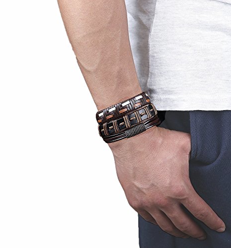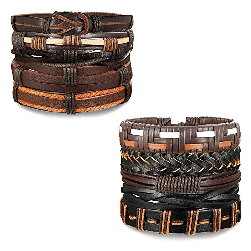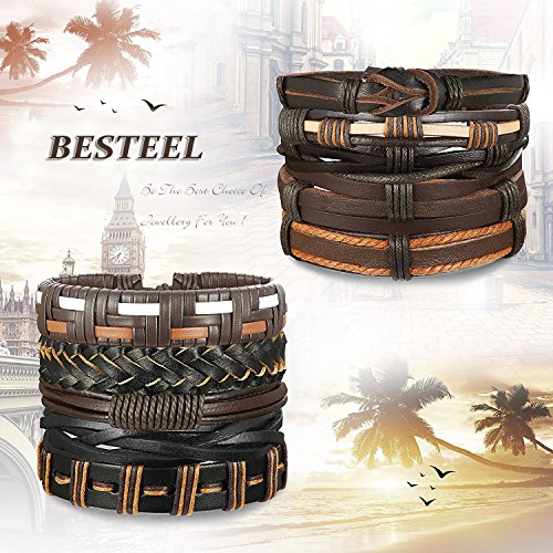 BESTEEL - سوار جلد مضفر للرجال والنساء من بيستيل 10-16 قطعة- معصم بخيط قابل للتعديل