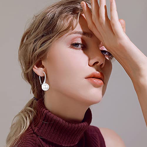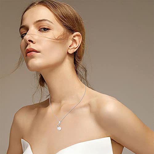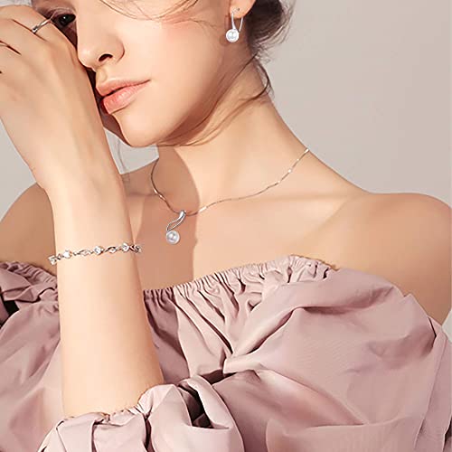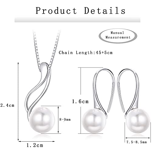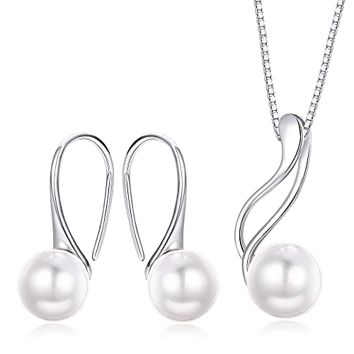 BESTEEL - مجموعة مجوهرات من دلاية قلادة وحلقان متدلية للنساء بلؤلؤ المياه العذبة الابيض الانيق الفضة الاسترليني والزركونيا المكعبة بستييل فضة استرليني زركونيا مكعب أحمر