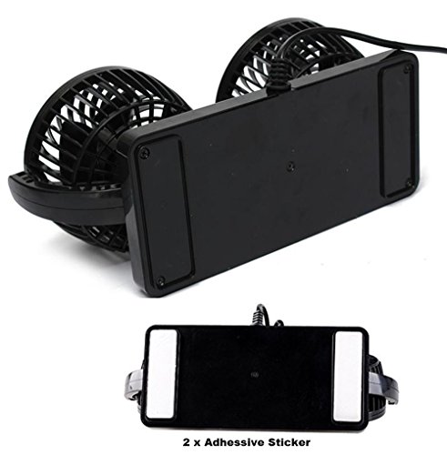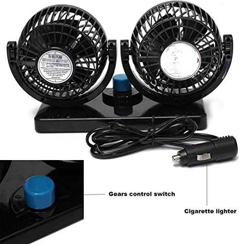 BestFire - مروحة سيارة مزدوجة الرأس وقابلة للتعديل بدوران 360 درجة هادئة مزودة بسرعتين بقوة 12 فولت لتكييف الهواء ودوران لتابلوه السيارة في الصيف من بيست فاير عدد المنافذ: 10 10.0 واط