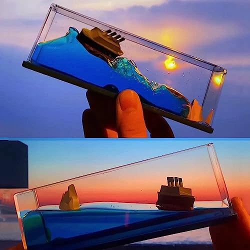 - سفينة سياحية غير قابلة للغرق: تتميز زينة الحركة السائلة هذه بسفينة تايتانيك السياحية التي لا تغرق أبدًا. المادة الخارجية مصنوعة من الأكريليك المتين، في حين أن التايتانيك ومياه البحر بالداخل مصنوعان من الراتنج عالي الجودة والماء النقي الممزوج بالزيت النباتي لضمان بقائه طافيًا.