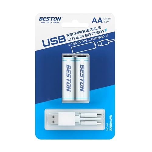 Gene Pro General - بطارية ليثيوم شحن خارجية ايه ايه 1.5 فولت بدون شاحن مع مدخل USB نوع C من بيستون (عبوة من قطعتين)
