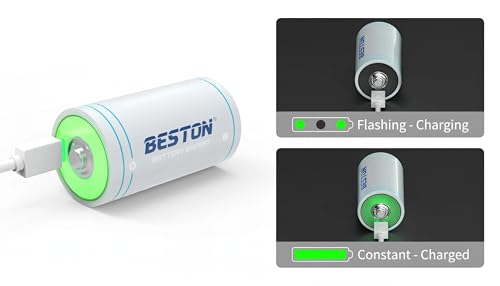 Gene Pro General - بطارية طورش قابله للشحن الخارجى بدون شاحن من BESTON D بجهد 1.5V مع مدخل USB Type-C (عبوة من قطعة واحدة)