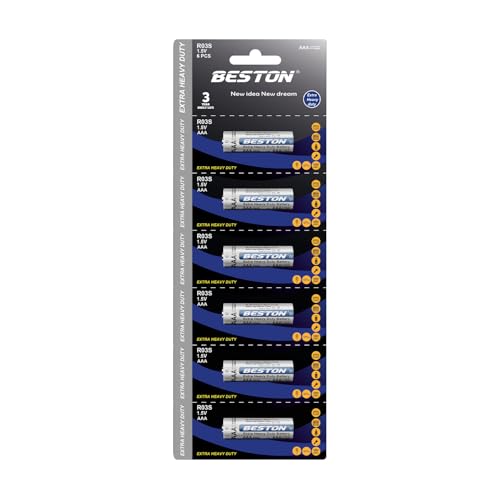 Gene Pro General - بطاريات BESTON R03S AAA 1.5V - Extra Heavy Duty - كرتونة 120 كارت (720 قطعة بطارية) - بطارية Zinc Carbon عالية الأداء للريموت كنترول والألعاب والساعات وجميع الأجهزة المنزلية الصغيرة
