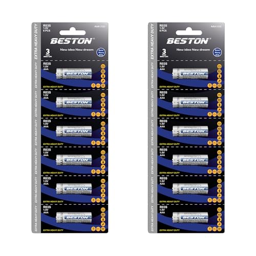 Gene Pro General - بطاريات BESTON R03S AAA 1.5V - Extra Heavy Duty - عبوة 2 كارت (12 قطعة بطارية) - بطارية Zinc Carbon عالية الأداء للريموت كنترول والألعاب والساعات وجميع الأجهزة المنزلية الصغيرة