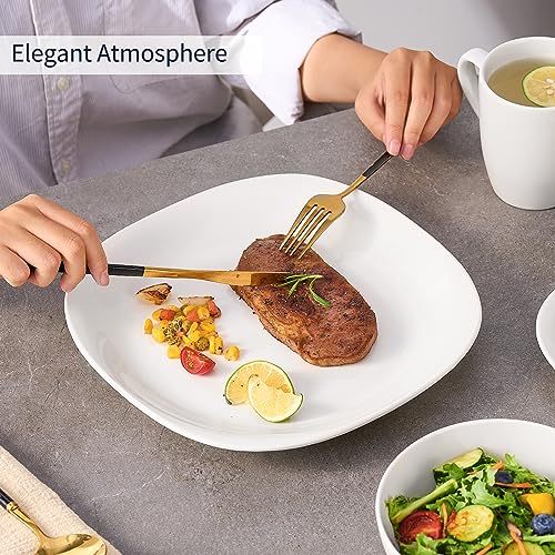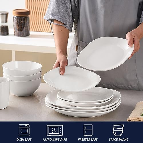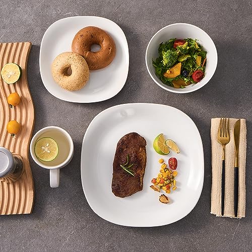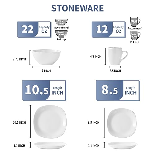 bestone - بيستون مجموعة ادوات مائدة مربعة مكونة من 16 قطعة، من الخزف الحجري واطباق واوعية واطباق، خدمة لـ 4 قطع، ابيض