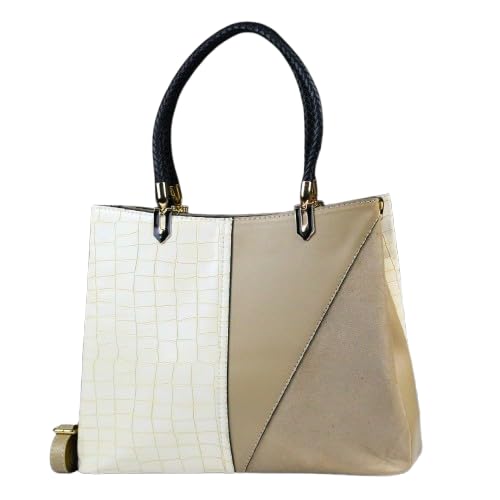 حقيبة يد وكتف نسائية الاكثر مبيعا - تصميم ايطالى - جلد كروكوديل مغطى بطبقة PU ضد الخدش و مقاوم للماء مطعم شمواه = بيج 1010