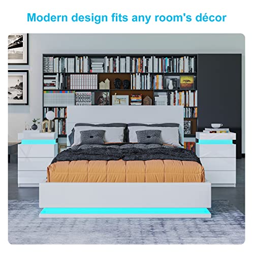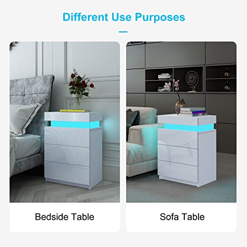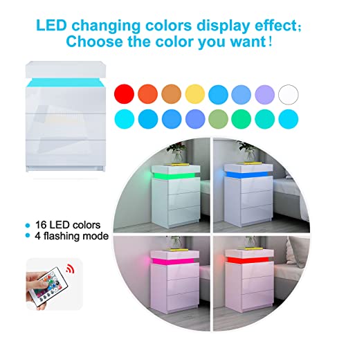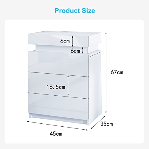 BESTWANTED - طاولة بجانب السرير من بيست وانتيد عالية اللمعان مكونة 3 أدراج خزانة عصرية مع أضواء LED لغرفة النوم وغرفة المعيشة 67 × 45 35 سم أبيض بولي يوريثين بلاستيك