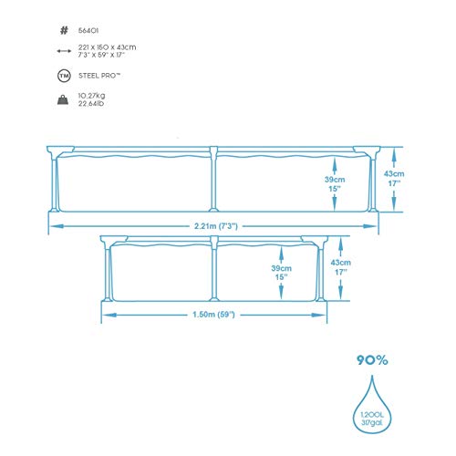Bestway - حوض سباحة ستيل برو 56401 من بيست واي | حمام سباحة مستطيل فوق الارض، حمام سباحة قابل للفصل للاطفال، مقاسات متعددة، ازرق، 221 × 150 × 43 سم