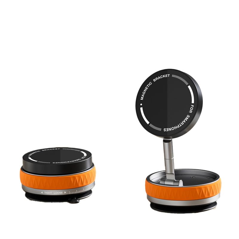 Betherioa - حامل موبايل مغناطيسي بالتفريغ الهوائي مطور بدوران 360° وقاعدة لاصقة فائقة معززة تتحمل 43.5 كجم، حامل تثبيت للمراية والجيم والسيارة متوافق مع ماج سيف لآيفون وأندرويد من بيثيريوا (أسود برتقالي)