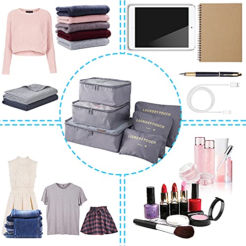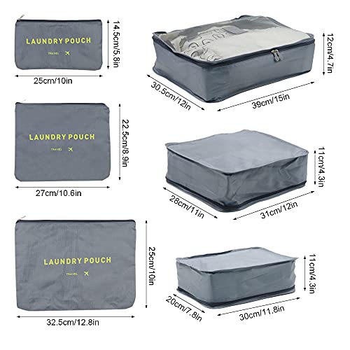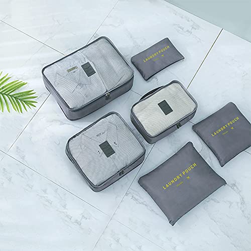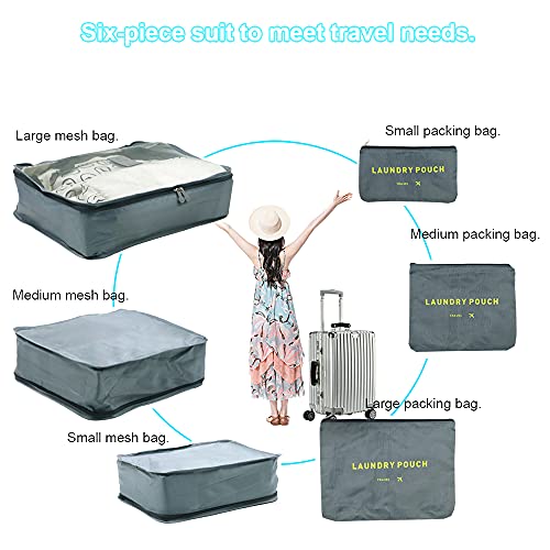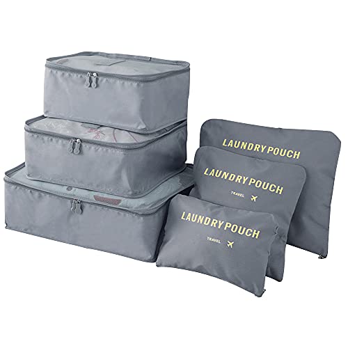 Generic - مجموعة من 6 مكعبات تعبئة لشنط السفر من بيتينيار، مكعبات تعبئة وتنظيم امتعة السفر، مجموعة منظم امتعة السفر مع شنطة غسيل (رمادي)، قماش