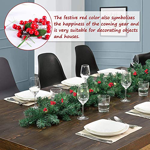 - 🍒سهل الصنع يدويًا: يتم تثبيت كل ثمرة هولي عيد الميلاد على جذع أخضر يمكن لفه بسهولة، مما يسمح باستخدام سلك ناعم لتغليف الفروع والمواد المصنوعة يدويًا الأخرى بسهولة.